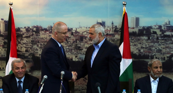 جرى اتصال هاتفي اليوم الأحد بين رئيس وزراء حكومة الوفاق الوطني رامي الحمد الله ونائب رئيس المكتب السياسي لحركة "حماس" ورئيس الحكومة السابقة في قطاع غزة إسماعيل هنية. وذكر بيان مقتضب صادر عن مكتب هنية تلقت "صفا" نسخة منه أن الاتصال الهاتفي بحث في العديد من القضايا الهامة من دون أن يورد مزيدا من التفاصيل. ويعد هذا هو اتصال هاتفي معلن بين هنية والحمد الله بعد التفجيرات التي شهدها قطاع غزة أمام منازل ومكاتب قيادات من حركة فتح في قطاع غزة. وكان الحمد الله أعلن عقب التفجيرات عن إرجاء زيارة مقررة له إلى قطاع غزة دون أن يحدد موعدا لها حتى الآن. وتواجه حكومة الوفاق اتهامات واسعة النطاق بتجاهل أوضاع قطاع غزة وتهميشه منذ تشكيلها مطلع يونيو الماضي بموجب تفاهمات للمصالحة الوطنية بين وفد من منظمة التحرير وحركة حماس أعلنت في 23 أبريل الماضي.