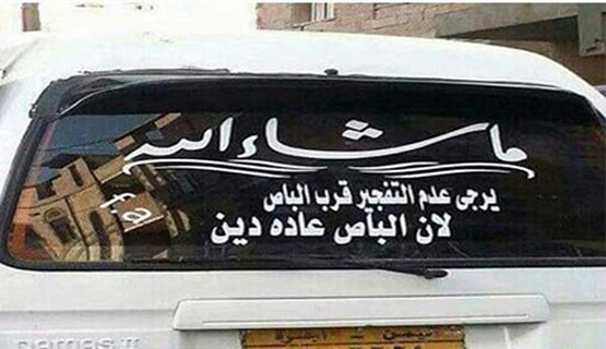 وكتب صاحب حافلة صغيرة على زجاج سيارته: الرجاء عدم التفجير بقرب الباص لأن عليه دينًا لم يسدد.