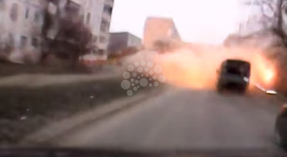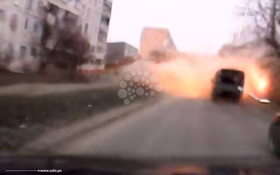 ونجح سائق سيارة من تصوير القصف والنجاة بمعجزة من موت محقق رغم إصابة سيارته بالشظايا التي ظهرت كجمر تتطاير حوله.