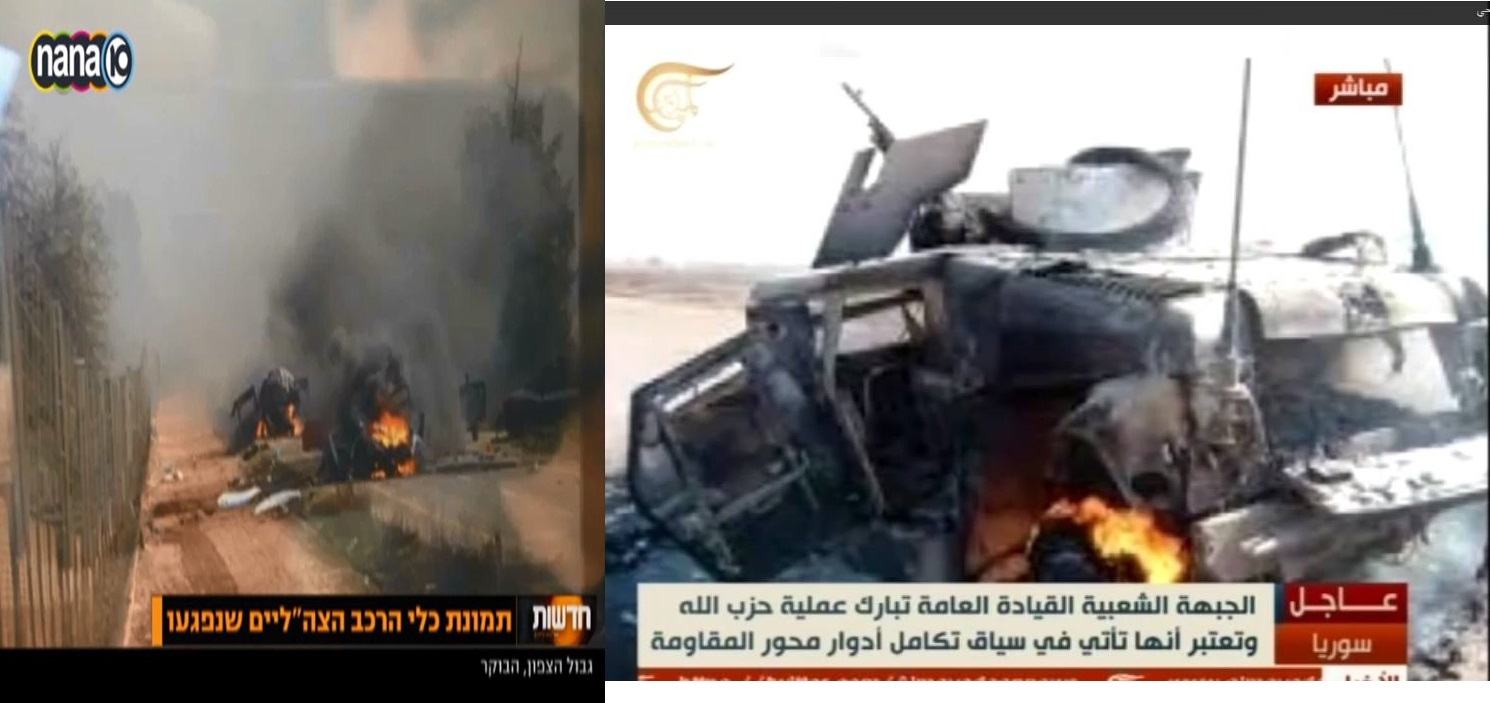 بثت وسائل إعلامية لبنانية على رأسها قناة "الميادين" صوراً قالت إنها لعملية استهداف حزب الله اللبناني عددًا من جيبات جيش الاحتلال الإسرائيلي في منطقة مزارع "شبعا" جنوب لبنان قبل أن يتبين زيف الصور .