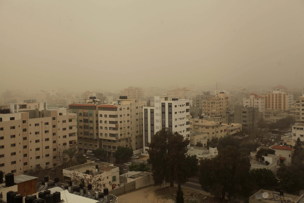 تشهد فلسطين والمنطقة عاصفة تعتبر الأعنف منذ 5 أعوام، وما تحدثه من تلوث بفعل الرمال والغبار والذي يعتبر الأشد والأوسع حيث بلغ التلوث مستويات عالية مع وصول أطنان من الرمال الإفريقية في مقدمة المنخفض الجوي تحملها رياح عاتية.