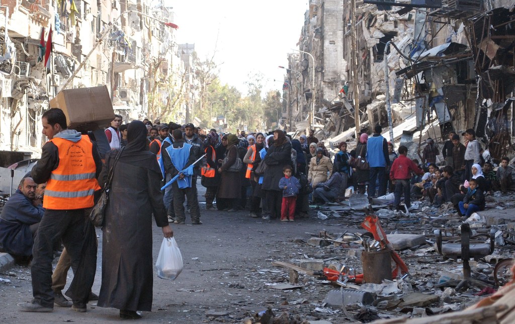وحسب التقرير الذي صدر في فيينا، فإن عدد السكان من الفلسطينيين والسوريين هناك انخفض بشكل حاد منذ بداية الأزمة، حيث أصبح عددهم الآن حوالي "20000" نسمة، بعد ما كان العدد يربوا على نصف مليون شخص.