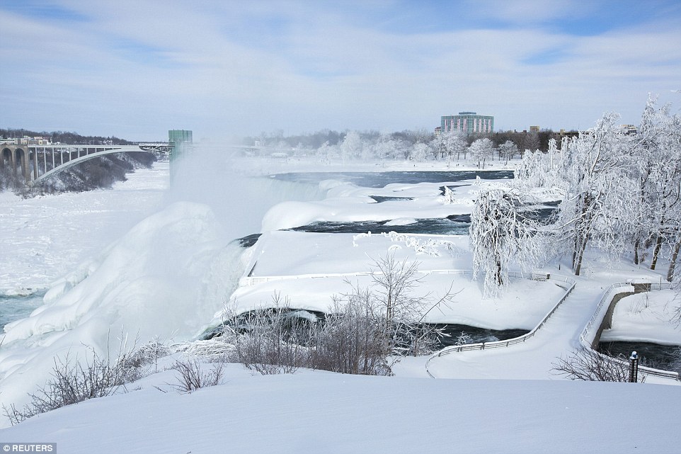 تسببت موجة البرد والثلوج التي تشهدها الولايات المتحدة بتجمد شبه كامل لـ"شلالات نياغرا"، أشهر شلالات في العالم، والتي تستقطب ملايين السياح الذين يقصدونها من مختلف أنحاء العالم سنوياً.