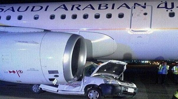 أوضحت إدارة مطار الملك عبدالعزيز الدولي بجدة الخميس، أنه في تمام الساعة 3:14 من فجر اليوم ورد بلاغ من برج المراقبة الجوية في المطار يفيد بوقوع حادث اصطدام بين سيارة يقودها أحد منسوبي الخدمات الأرضية وطائرة من طراز AB-320 تابعة للخطوط الجوية العربية السعودية أثناء عبورها ممر الطائرات إلى حظيرة الصيانة.