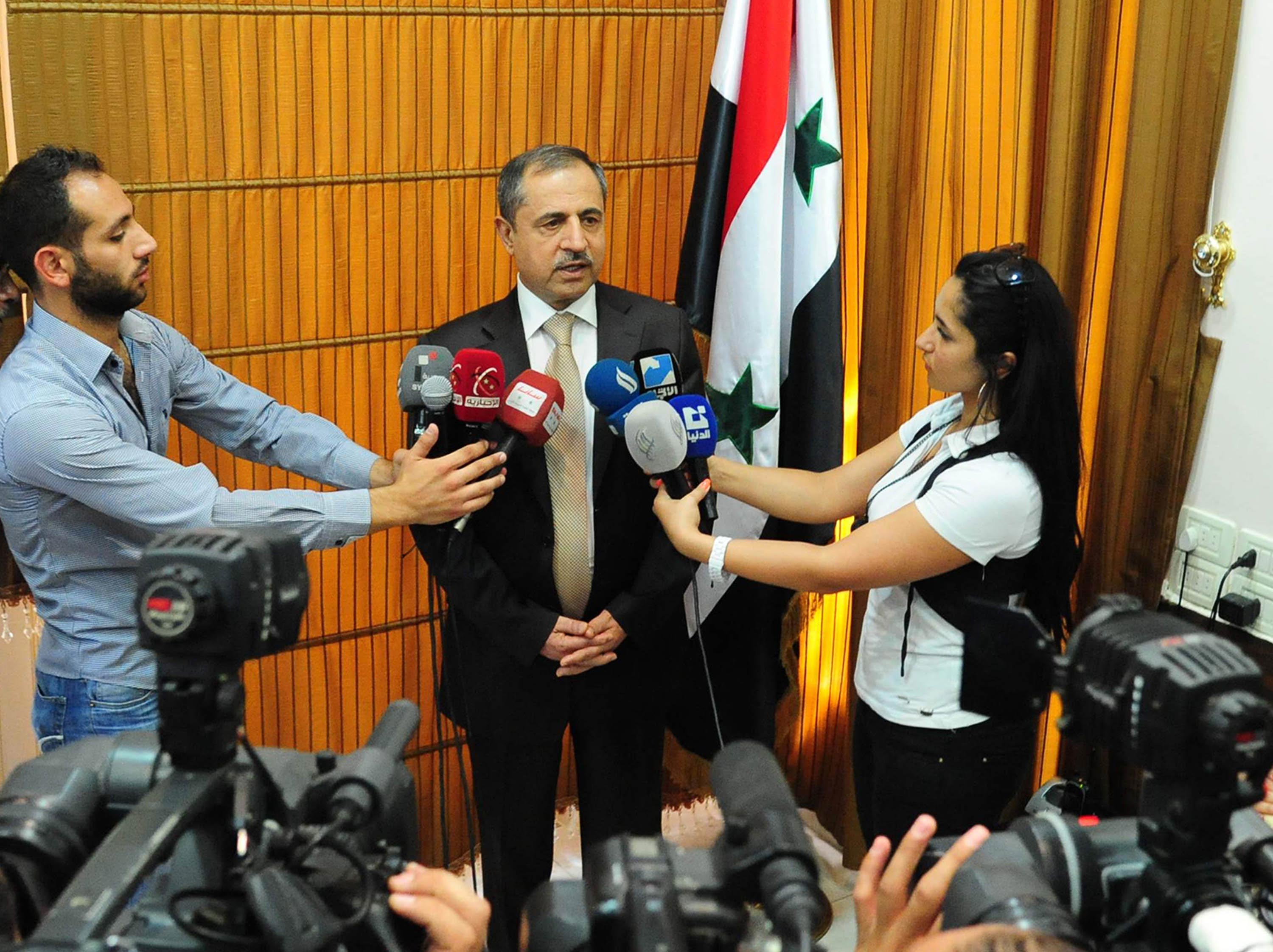 وأكد دعم الحكومة السورية لحل أزمة مخيم اليرموك من أجل عودة اللاجئين الفلسطينيين إلى بيوتهم، قائلاَ "إن الحكومة السورية قد منحت إقامات لحوالي 3700 من اللاجئين الفلسطينيين الذين لا يعتبرون فلسطينيين سوريين، وممن لا يحملون وثائق سفر سورية والذين قدموا إلى سوريا بعد عام 1970".