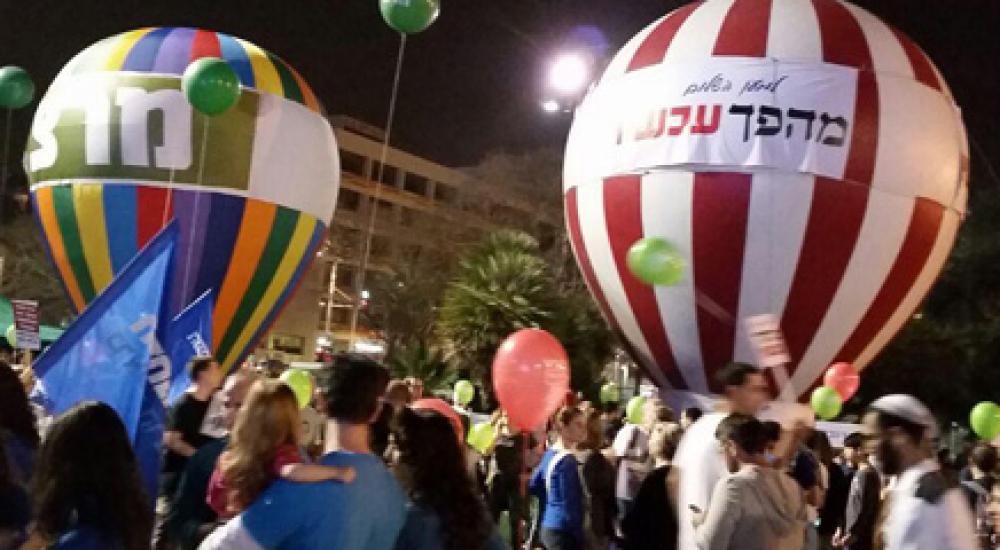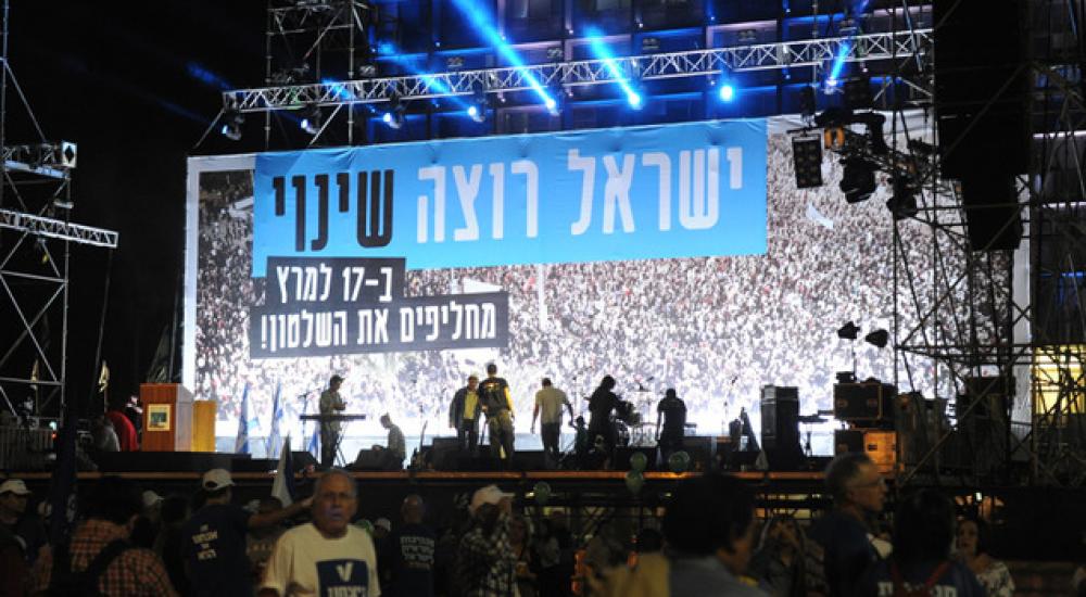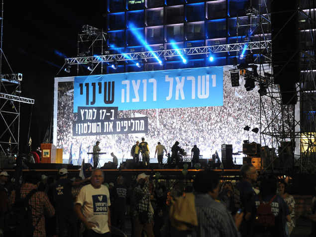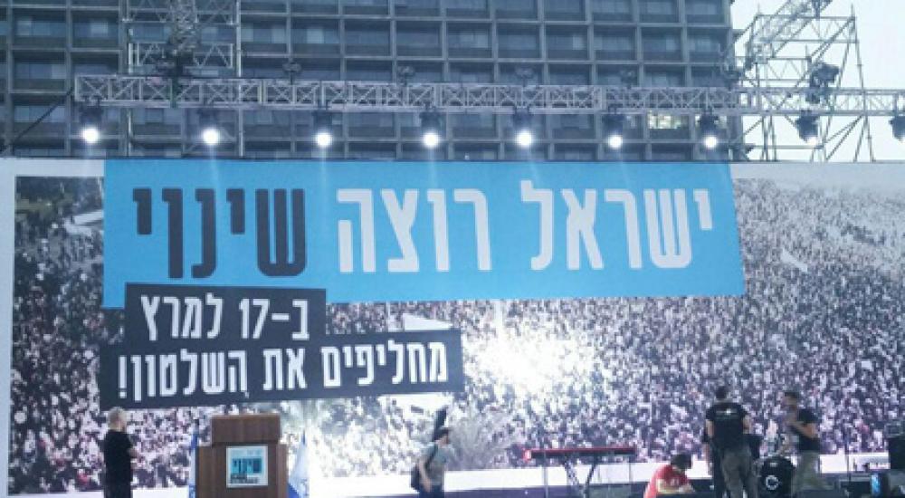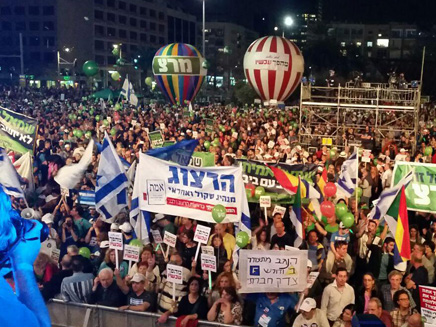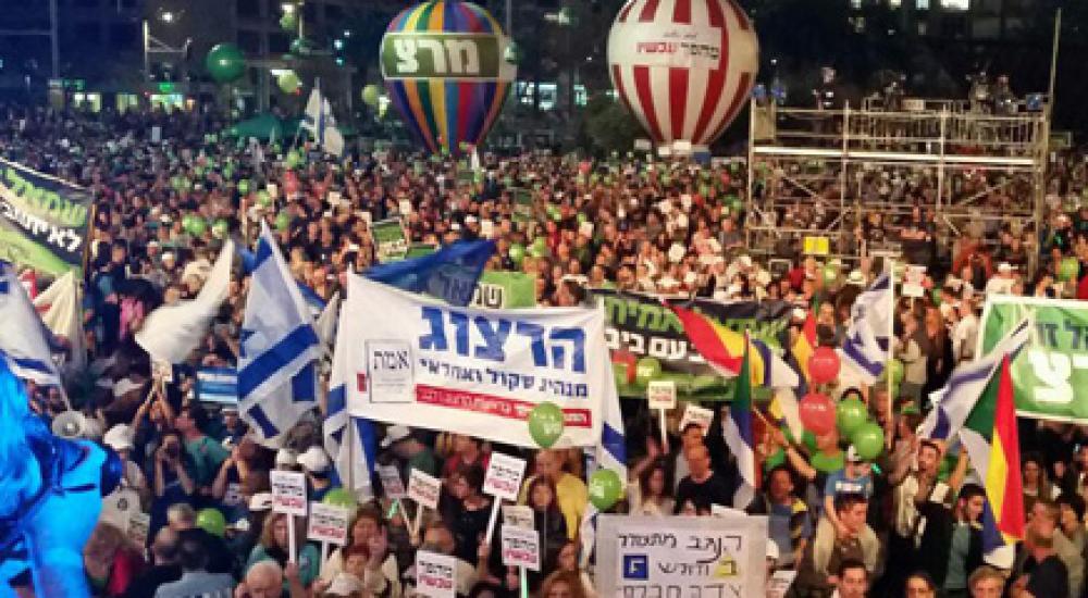 تظاهر عشرات الألاوف من الإسرائيليين الليلة في ميدان رابين وسط تل أبيب، وذلك بدعوة من أحزاب اليسار الإسرائيلي للدعوة لتغيير حزب الليكود الحاكم وعلى رأسه بنيامين نتنياهو .
