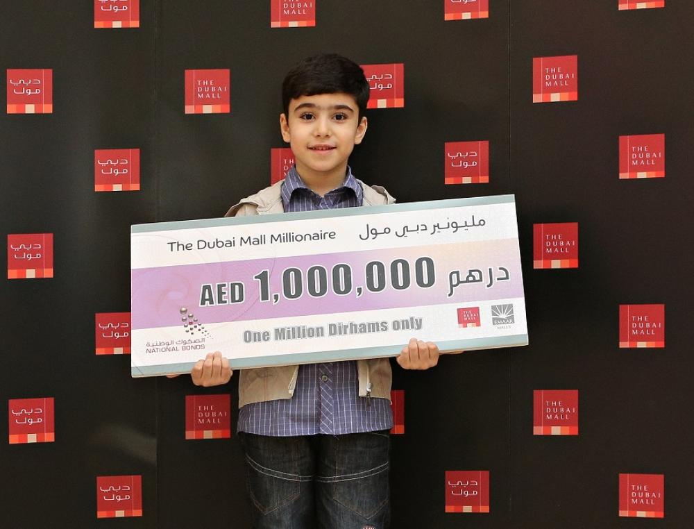 ربح الطفل السوري سيف، البالغ من العمر 7 سنوات ويقطن في إمارة رأس الخيمة، جائزة المليون درهم إماراتي من "دبي مول" على شكل سندات وطنية، ليصبح بذلك أصغر مليونير فوري في عام 2015.