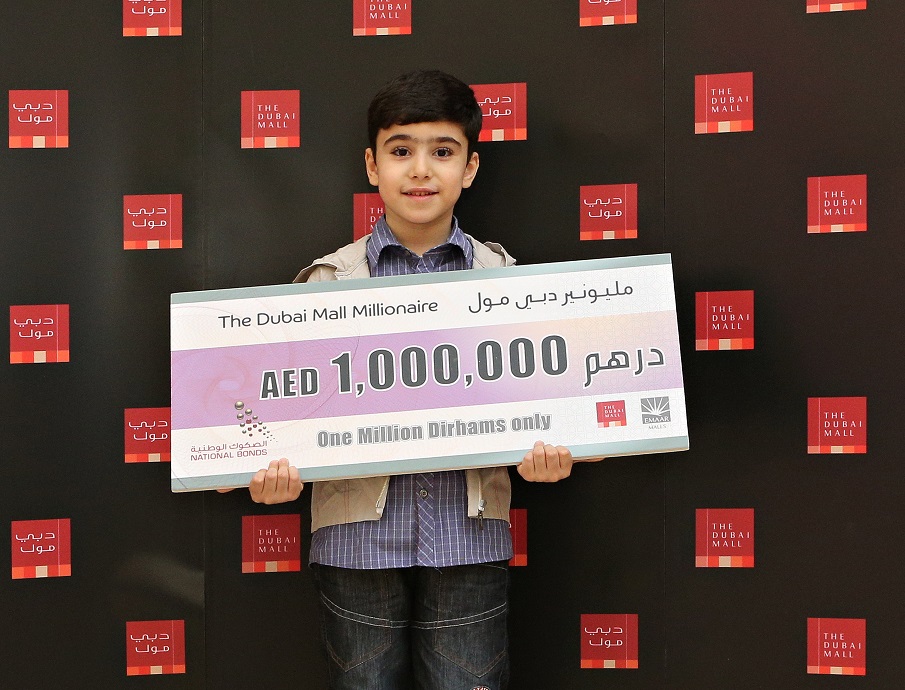 واستلم سيف الشيك البالغة قيمته مليون درهم إماراتي على شكل سندات وطنية في "دبي مول" بحضور والده.