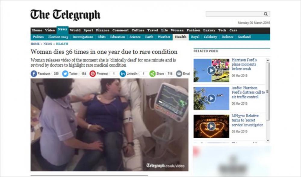 جرى تشخيص سارة بروتيغام (21 عاما) من دونكاستر في المملكة المتحدة بمرض قلبي نادر قبل أربع سنوات، ويؤدي هذا المرض إلى حدوث نوبات يتسارع فيها نبض قلبها ثم يتوقف عن النبض وينخفض ضغط دمها، مما قاد إلى إعلان الأطباء وفاتها سريريا 36 مرة في عام واحد.