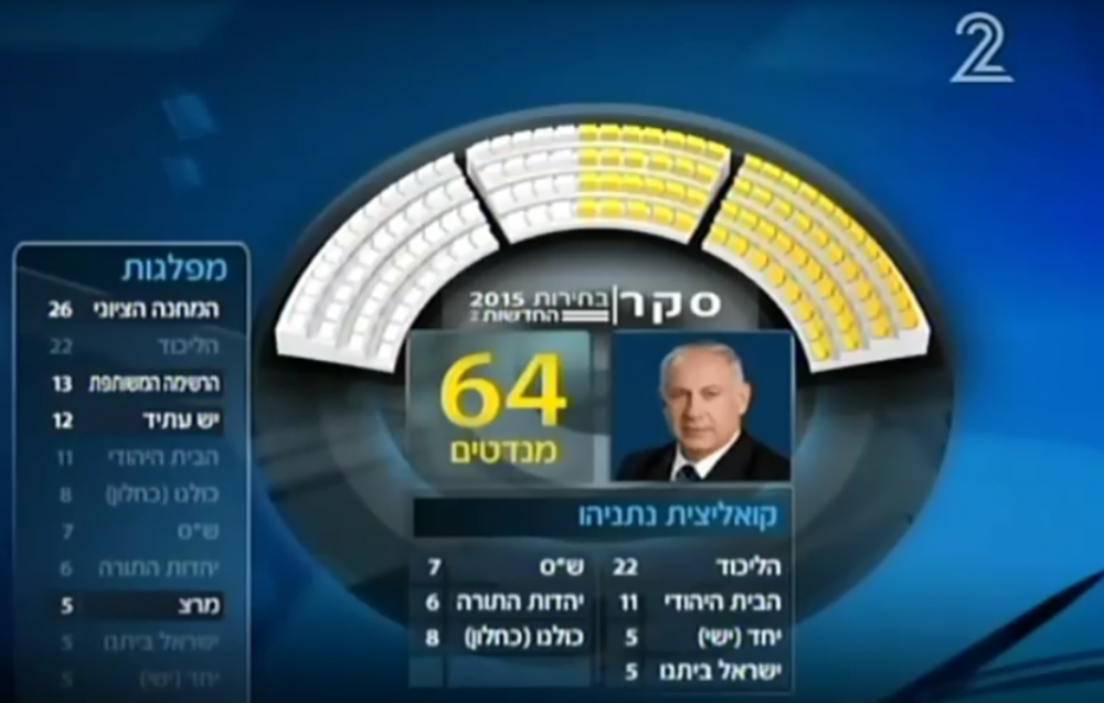 وجاء على لسان المحللة السياسية في القناة العبرية الثانية "رينة متسليح" أن أحزاب اليمين وأحزاب الوسط ستشكل الحكومة المقبلة برئاسة نتنياهو بواقع 76 مقعدا في إطار حكومة موسعة.