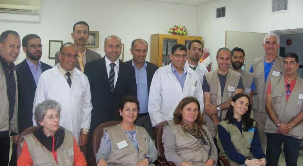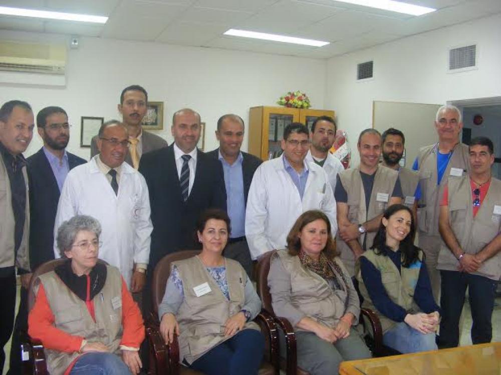 وكان في استقباله مدير المستشفى يوسف العقاد ، ورئيس لجنة الوفود ومدير التمريض عطا الجعبري، وفريق جراحة العظام بالمستشفى.