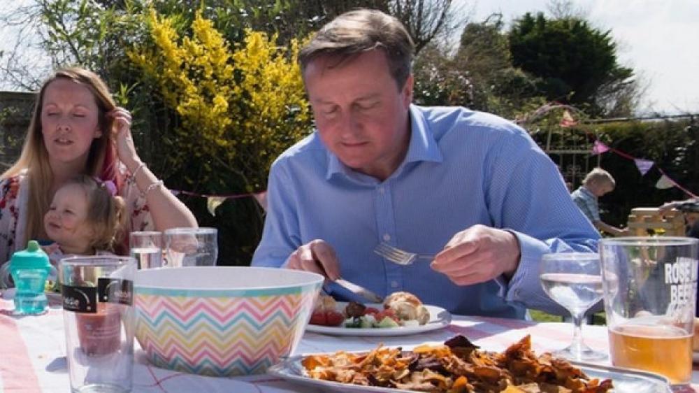 وكان الهدف من مشاركة رئيس الحزب المحافظ البريطاني في حفلة شواء انتخابية إعطاء صورة لكاميرون على أنه رجل عادي قريب من الناس، وتجلى ذلك خصوصاً من خلال استغنائه عن البزة الرسمية وربطة العنق.
