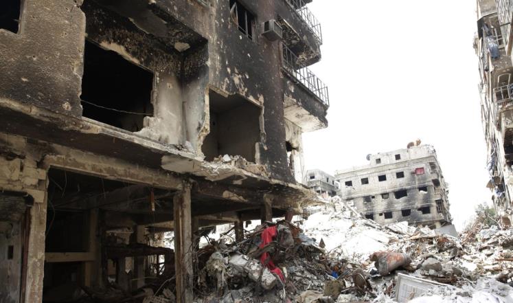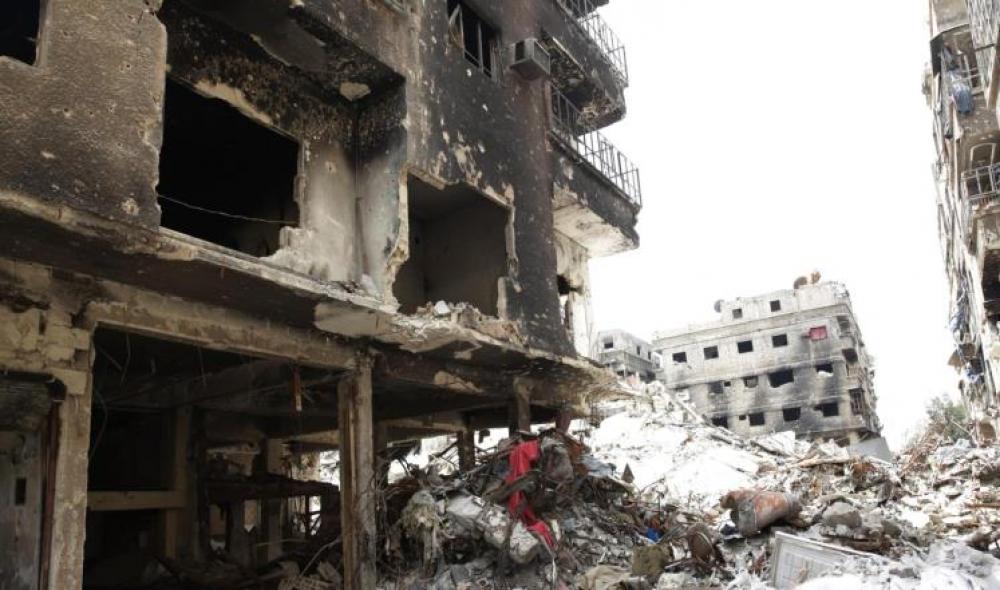 جانب من الدمار بمخيم اليرموك نتيجة المعارك والقصف