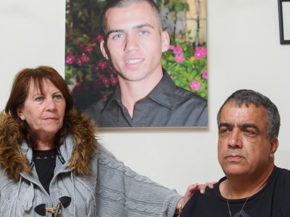 والدا الجندي شاؤول مع صورته