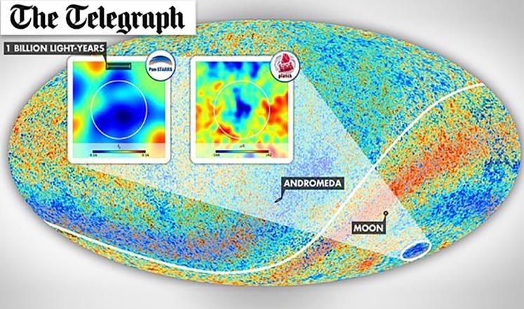 وتتواجد هذه البقعة الهائلة، وفقًا لصحيفة "ذي تلغراف"، في منطقة من الفضاء أبرد بكثير من الأجزاء الأخرى للكون، لكنها ليست فارغة بشكل تام، حيث تحتوي على 20% من المواد أقل من المناطق الأخرى.