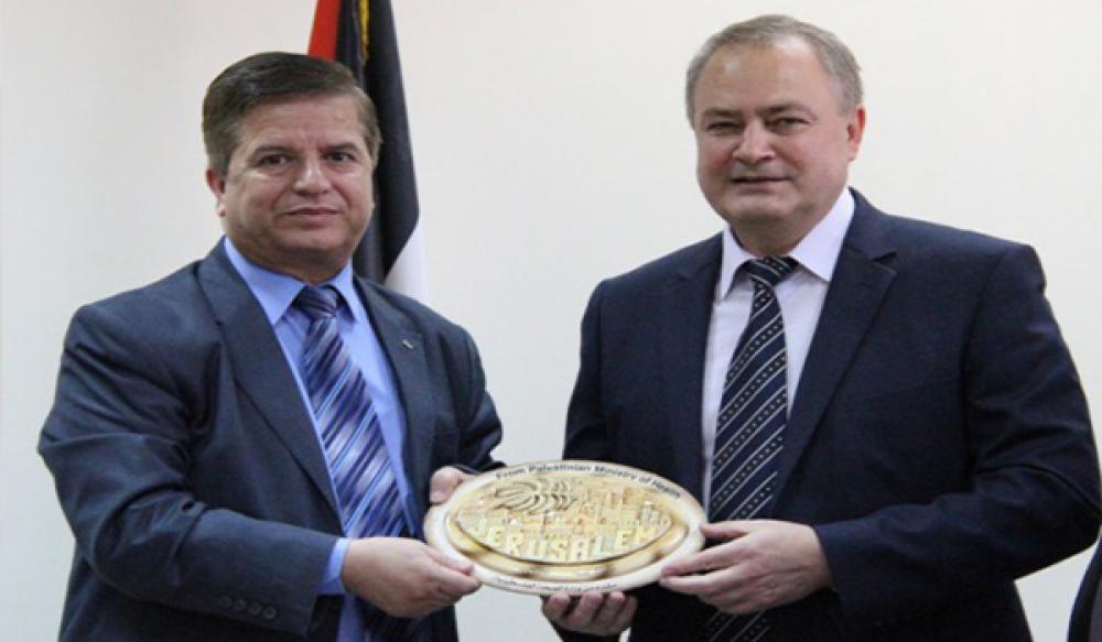 جاء ذلك خلال لقاء جمع وزير الصحة جواد عواد، والسفير الروسي المعتمد  لدى فلسطين الكسندر روداكوف، وبحضور مدير منتظمة الصحة العالمية جيرالد روكنشوب.