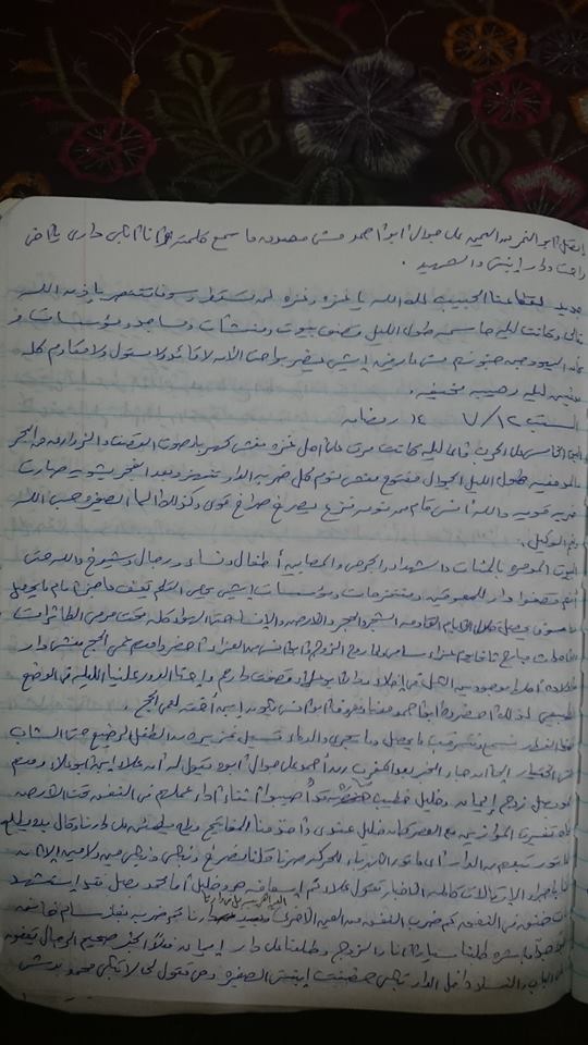 وتضيف قلمي كان يقف عاجزا عن الشعور الذي أصابني جراء استشهاد صهري في اليوم الخامس من حرب الإسرائيلية عام 2014، بالإضافة إلى هول المجازر التي ارتكبتها قوات الاحتلال بحق العائلات الفلسطينية.