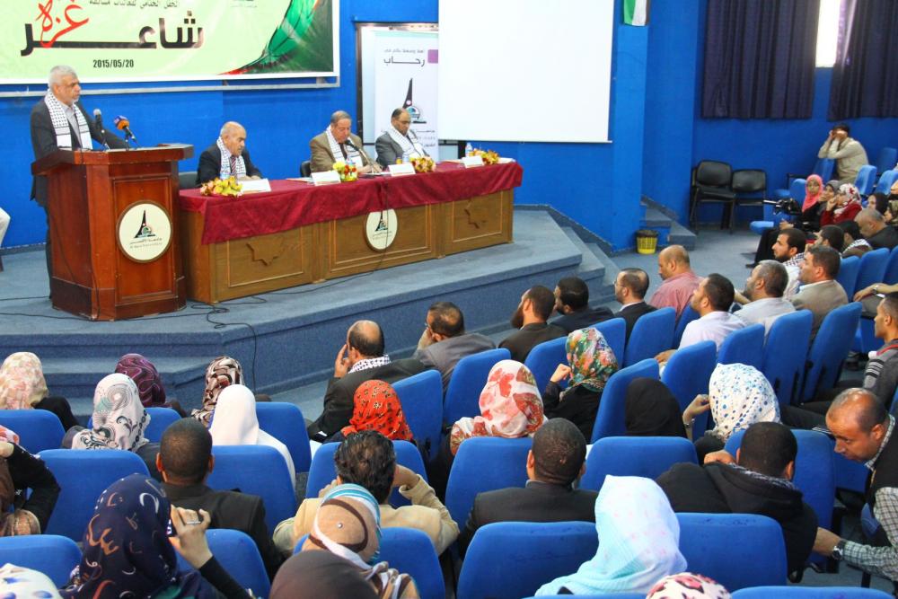 من جهتها أكد نائب رئيس جامعة الأقصى للشؤن الثقافية نعمات علوان أن أبواب الجامعة "مفتوحة دائما أمام الجميع لتنفيذ كافة الفعاليات والأنشطة العلمية الأدبية والثقافية".