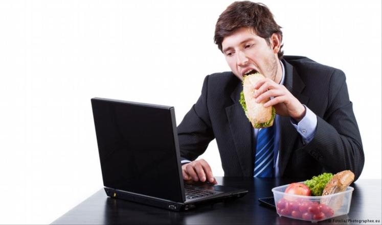 كما أن قلة الوقت وازدحام جدول الأعمال وقلة الاهتمام كلها قد تجعلنا نأكل بسرعة كبيرة وبشكل غير صحي للغاية في فترات ضغط العمل. علاوة على أن الضغط النفسي يجعل الجسم يستجيب بالنهم والشراهة والأكل أكثر. ولسوء الحظ فإن للحلويات لدى الكثيرين مفعول البلسم المهدّئ الذي يصرف عنهم الضغط النفسي.
