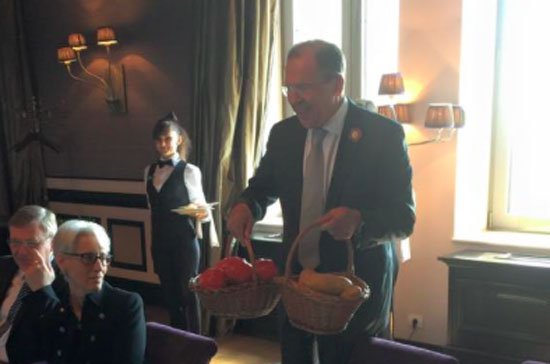 ذكرت صحيفة "ديلي تليغراف" البريطانية الخميس أن وزير الخارجية الروسي سيرجى سيرجي لافروف أهدى نظيره الأمريكي جون كيري خلال لقائهما في منتجع سوتشي أول أمس الثلاثاء سلتي بندورة وبطاطا.