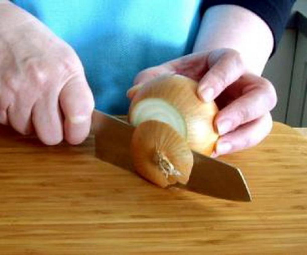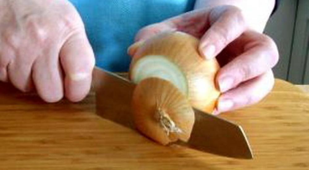 - الطريقة الأولى تقضي بوضع البصلة في البراد قبل تقطيعها. ذلك يبطئ انطلاق المواد الطيّارة المثيرة للدموع الموجودة في البصل.