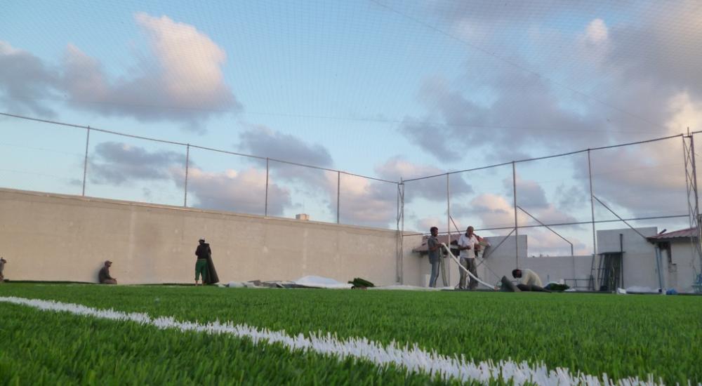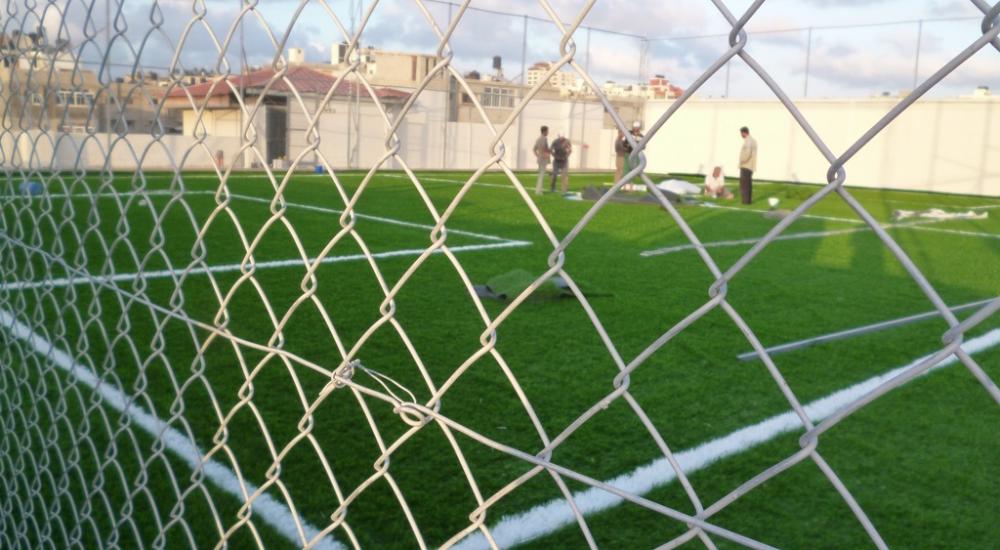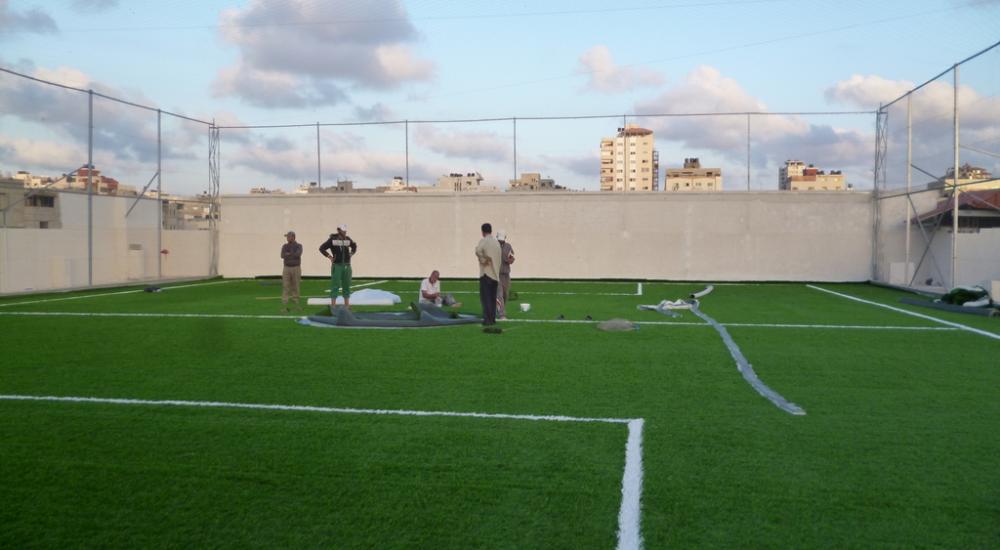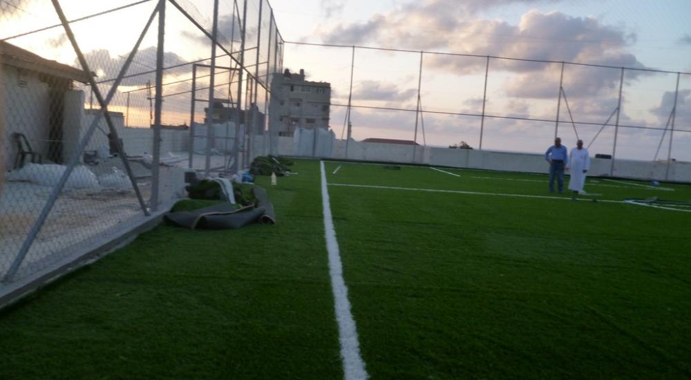 ملعب خماسي لكرة القدم على سطح ناد بغزة