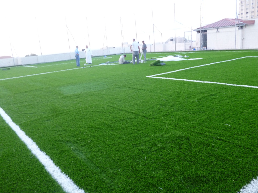 ويشير بارود في حديث لوكالة "صفا" إلى أنه "بعد استشارة مهندس المبنى للنادي أكد جهوزية سطحه لتحمل الضغط واستيعاب ملعب رياضي خماسي معشب الأمر الذي شجّع النادي لإنشاء الملعب".