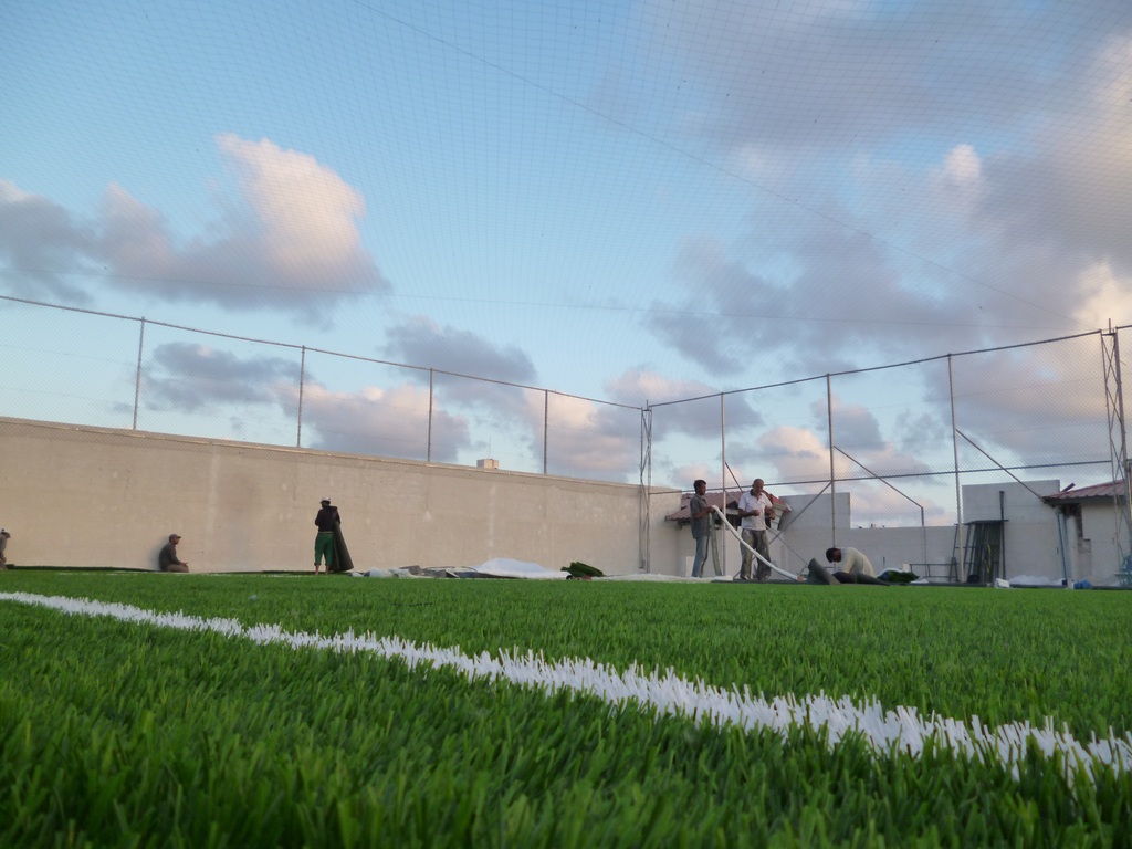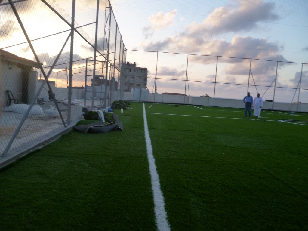 ويلفت إلى أن الملعب سيجهز بشكل كامل الأسبوع المقبل، وسيفتتحه السفير القطري محمد العمادي الذي يرأس اللجنة القطرية لإعمار غزة ونائب رئيس المكتب السياسي لحركة حماس إسماعيل هنية في الثاني من الشهر المقبل.