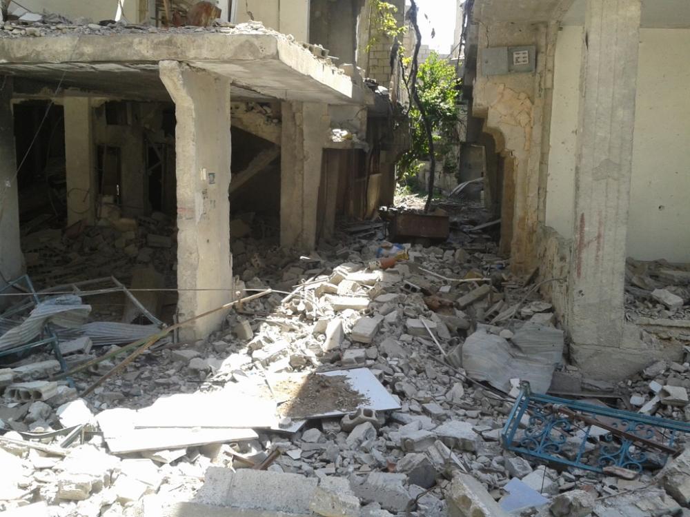 واوضحت المجموعة أن الاشتباكات تزامنت مع تعرض شارع الثلاثين للقصف وسقوط عدد من قذائف الهاون، وفي سياق متصل قام أبناء مخيم اليرموك بإزالة بعض من ركام المنازل المدمرة التي دمرت نتيجة القصف الذي تعرض له المخيم يوم أول من أمس بالبراميل المتفجرة، والذي خلف دماراً كبيراً في مكان سقوطها، وأودى بحياة شخص ووقوع عدد من الإصابات بين المدنيين.
