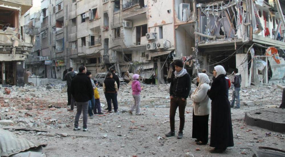 وفي ريف دمشق، استهدف الطيران الحربي المزارع المحيطة بمخيم خان الشيح للاجئين الفلسطينيين بريف دمشق، بأربعة براميل متفجرة على الأقل.