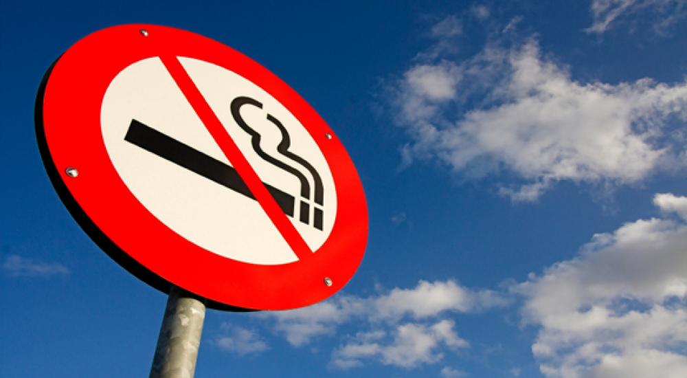 ومنع التدخين أيضاً في بعض الأماكن المفتوحة مثل المدارس والصالات الرياضية وباحات المستشفيات. كما باتت إعلانات شركات السجائر الكبرى محظورة في الخارج.