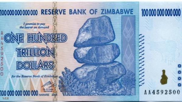 يشار إلى أن آخر عملة طبعت في زيمبابوي كانت بقيمة 100 تريليون دولار، ولم تكن كافية لاستقلال حافلة لمسافة صغيرة في العاصمة هراري، علما أن العملات المحلية باتت تباع كتذكار للسياح.