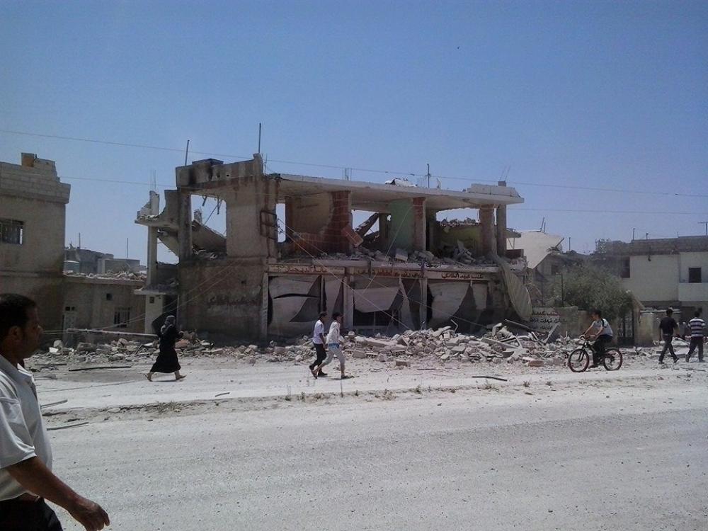وذكرت مجموعة العمل من أجل فلسطينيي سورية في بيان صحفي الخميس، أن الطائرات السورية ألقت أمس أربعة براميل متفجرة استهدفت شارع السعيد ومحيط شارع الفيلات، أدت إلى وفاة جنين في بطن أمه بعد إصابتها بشظايا القذائف.