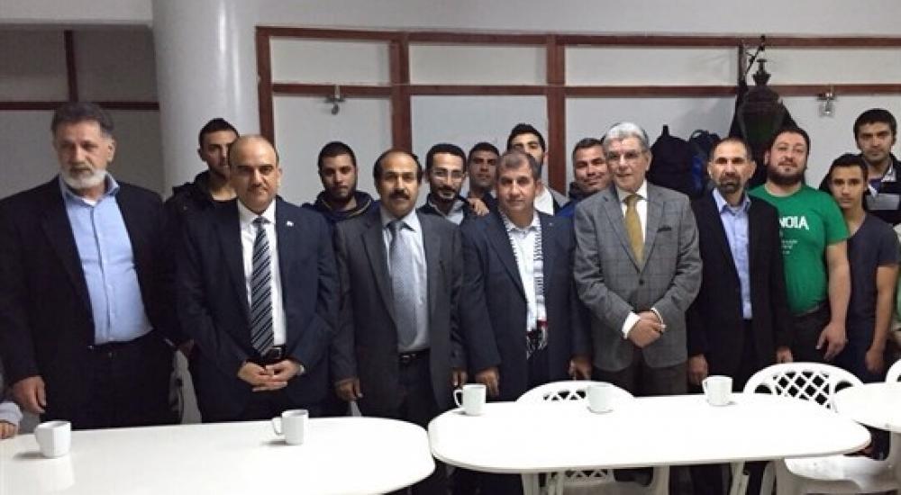 وقال: "نتعهد للأخوة اللاجئين بان السفارة الفلسطينية ستبقى مجندة لخدمتهم وستطرق كل الابواب من أجل التخفيف من معاناتهم وحل مشاكلهم".