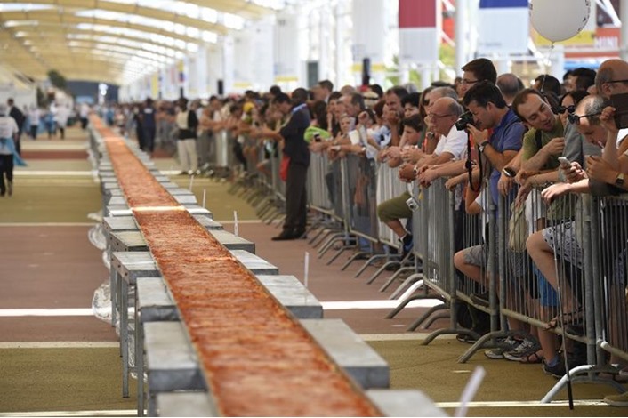 وتوج الممثل عن موسوعة "غينيس" للأرقام القياسية لورينزو فليتري، إيطاليا بطلة في هذا المجال مع بيتزا تمتد على 1595.45 مترًا تطلب تحضيرها 1500 كيلوغرام من الطماطم وطنًا ونصف الطن من جبنة موتزاريلا، وكميات كبيرة من زيت الزيتون.