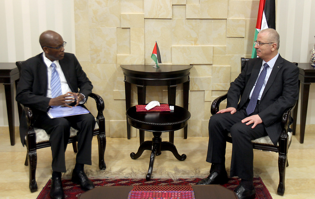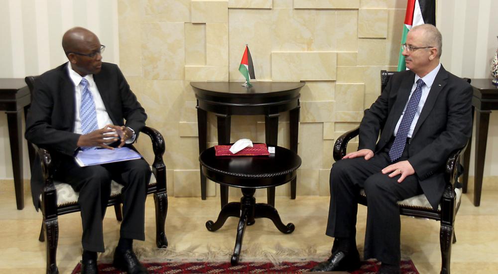 بحث رئيس الوزراء رامي الحمد الله اليوم الأحد في مكتبه برام الله، مع المبعوث الرئاسي الجنوب أفريقي للشرق الأوسط زولا سكوييا ووفد المرافق له، آخر التطورات السياسية.