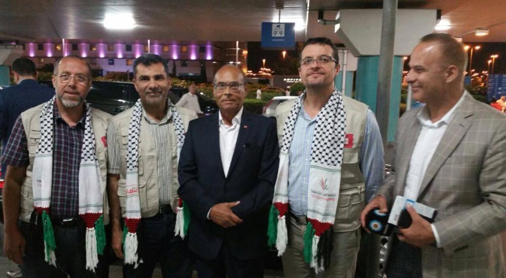 وكان في استقبال المرزوقي أعضاء الحملة الأوروبية لرفع الحصار عن غزة.