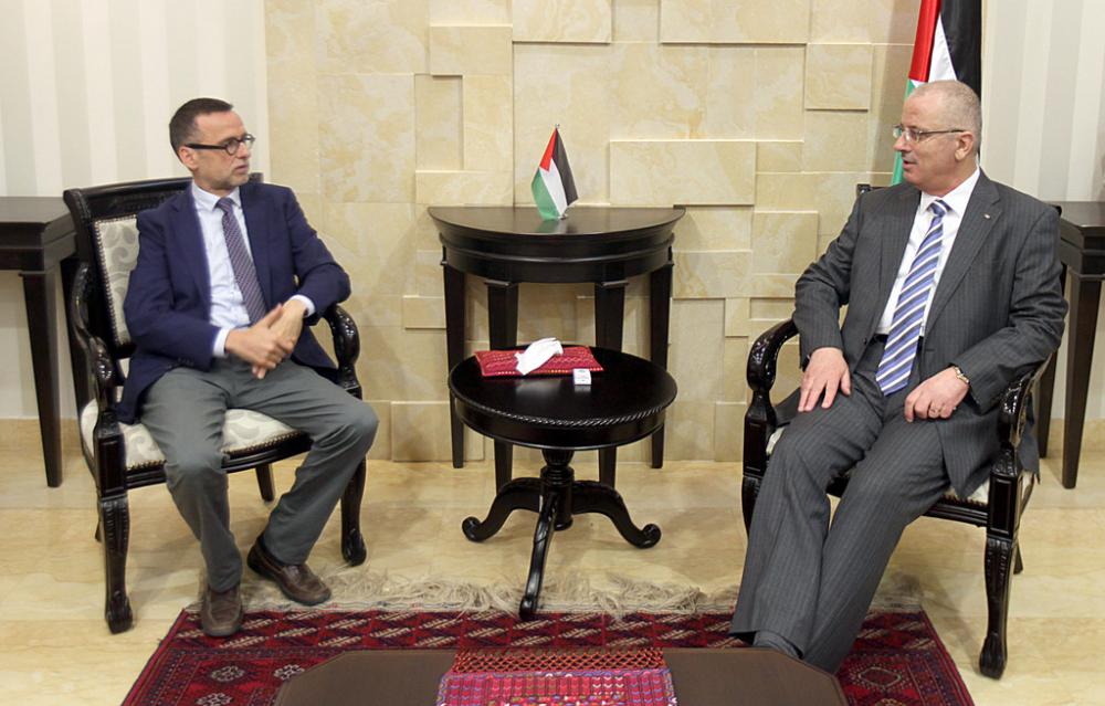 بحث رئيس الوزراء رامي الحمد الله الخميس مع الممثل الخاص للاتحاد الأوروبي لعملية السلام في الشرق الأوسط فرناندو جنتليني، أخر مستجدات العملية السياسية والاقتصادية، وتطورات عملية اعمار قطاع غزة.