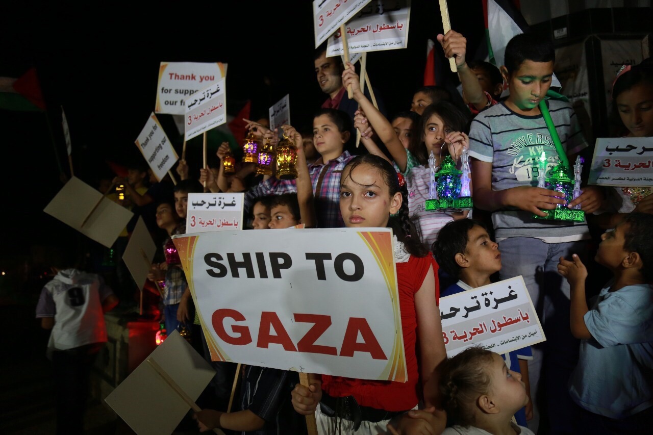نظم تحالف دعم أسطول الحرية في غزة مساء الخميس وقفةً لأطفال غزة في ميناء غزة البحري، حملوا خلالها فوانيس رمضان والأعلام الفلسطينية ترحيباً بأسطول الحرية الثالث المتجه إلى غزة.