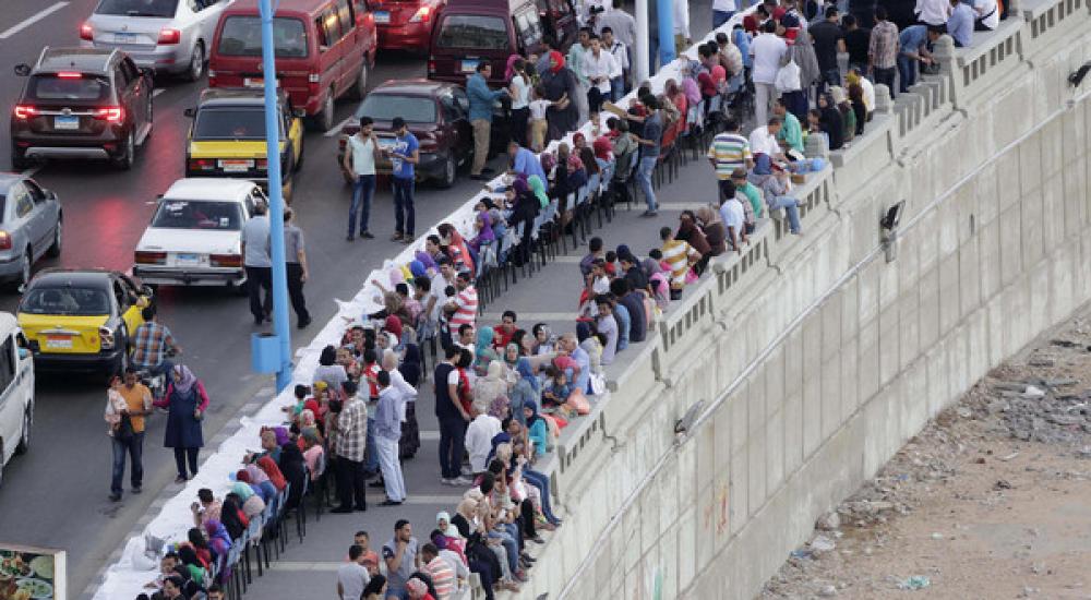 وأقيمت المائدة التي تكونت من مناضد متجاورة ومقاعد بشكل طولي بين منطقتي المحروسة وسيدي جابر في شرق الاسكندرية ثاني أكبر مدينة في مصر وسط تأمين من الشرطة.