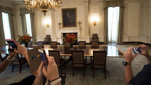 وأوضحت زوجة الرئيس باراك أوباما أن "الذين زاروا البيت الأبيض رأوا على الأرجح هذا اللوح"، رافعة ورقة كتب عليها: "الصور ووسائل التواصل الاجتماعي ممنوعة".