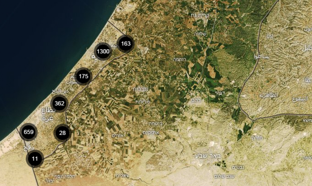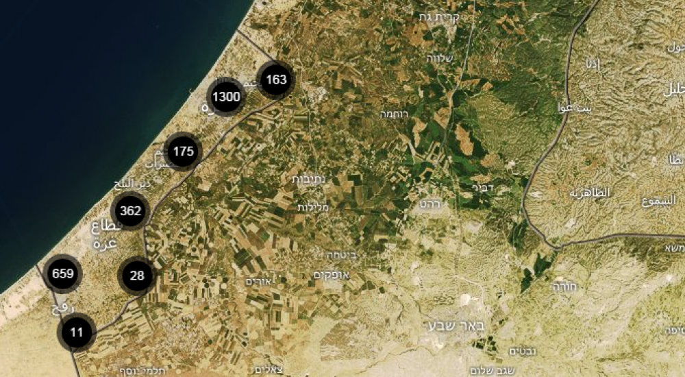 وتظهر الخريطة تعرض مدينة غزة وشمال قطاع غزة لنحو 1463 استهدافًا إسرائيليًا، بينما تعرضت محافظة وسط القطاع لنحو 537 استهدافًا، وكان نصيب جنوب القطاع (خانيونس ورفح) 698 استهدافًا.