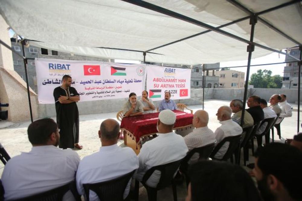 افتتحت جمعية "أرض السلام للتنمية والتطوير" أمس السبت في مخيم الشاطئ للاجئين غرب مدينة غزة محطة لتحليه مياه البحر بتمويل تركي.