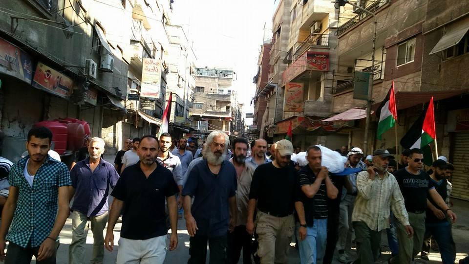 شيع أبناء مخيم اليرموك بدمشق الاثنين الناشط الإغاثي مصطفى الشرعان"أبو معاذ بعد اغتياله ليل أول أمس عقب خروجه من صلاة التراويح من مسجد عبد القادر الحسيني في المخيم.