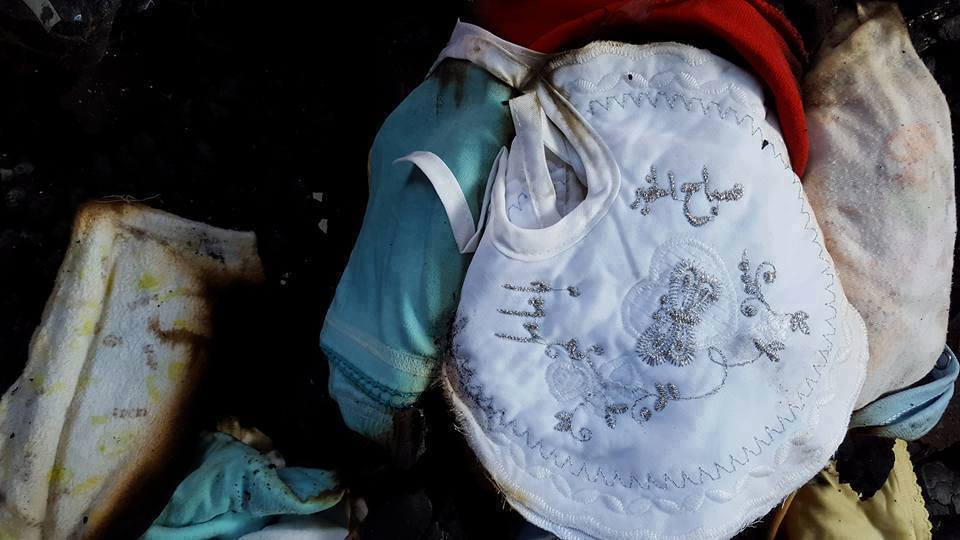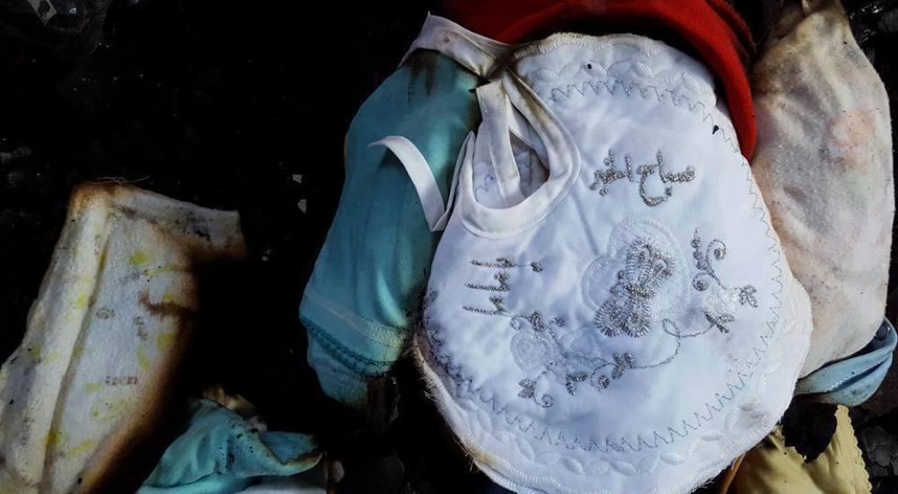 من بين قطع الملابس القليلة التي لم تصلها نيران المستوطنين في منزل عائلة دوابشة فجر الجمعة، التقطت عدسات المصورين قطعة ملابس للشهيد الرضيع "علي" حملت عبارة "صباح الخير يا ماما".. عبارة لم يمهل المستوطنون ابن العام والنصف ليكبر ويقولها لوالدته بلسانه.
