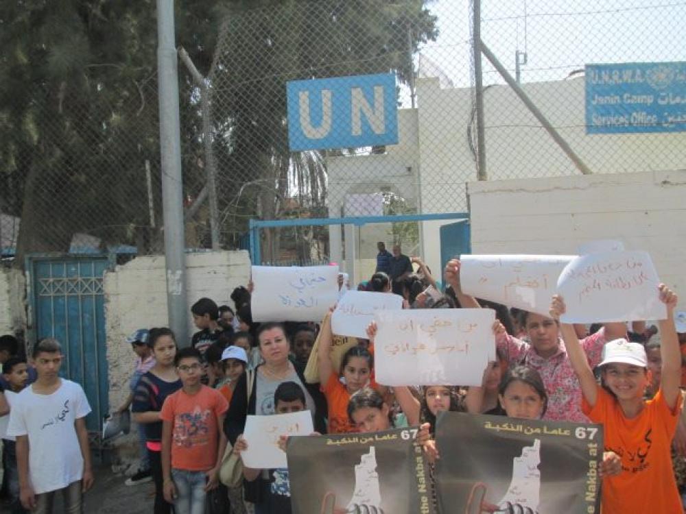 نظمت جمعية "كي لا ننسى" واللجنة الشعبية لخدمات مخيم جنين السبت وقفة لأطفال المخيم احتجاجًا على إعلان وكالة غوث وتشغيل اللاجئين الفلسطينيين (أونروا) تقليص خدماتها، والتي تمس شرائح واسعة من أهالي المخيمات.