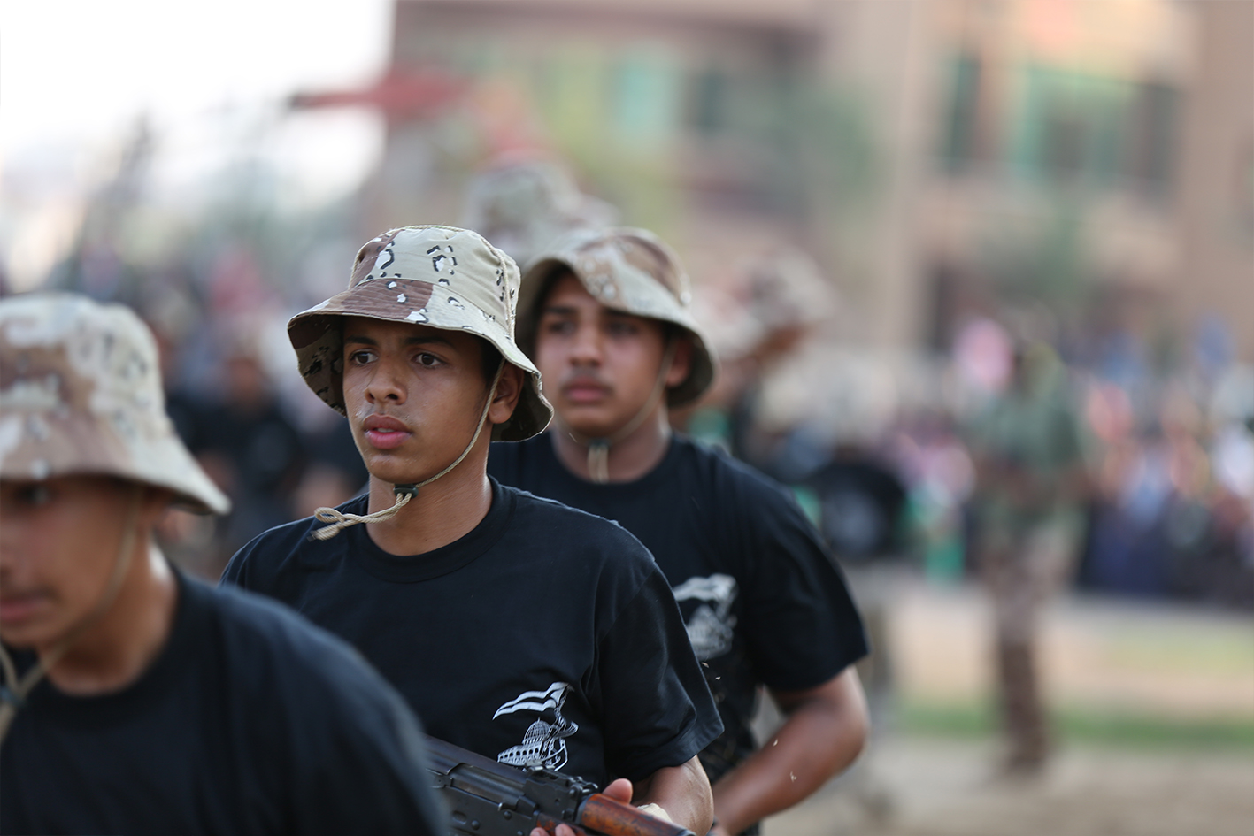 وأضاف "هناك بالمساجد نتعلم القرآن الكريم والأحاديث وهنا في المواقع نتعلم الشجاعة والإقدام، ولا بد من صنع الرجال ومثله صنع السلاح فلا يصنع الأبطال إلا في المساجد".