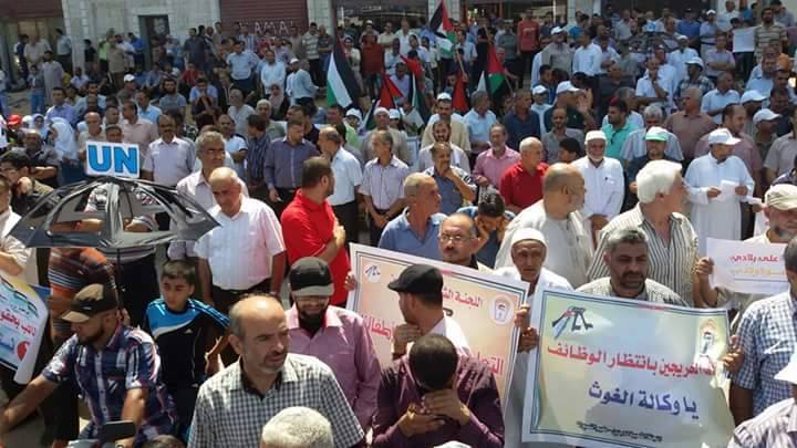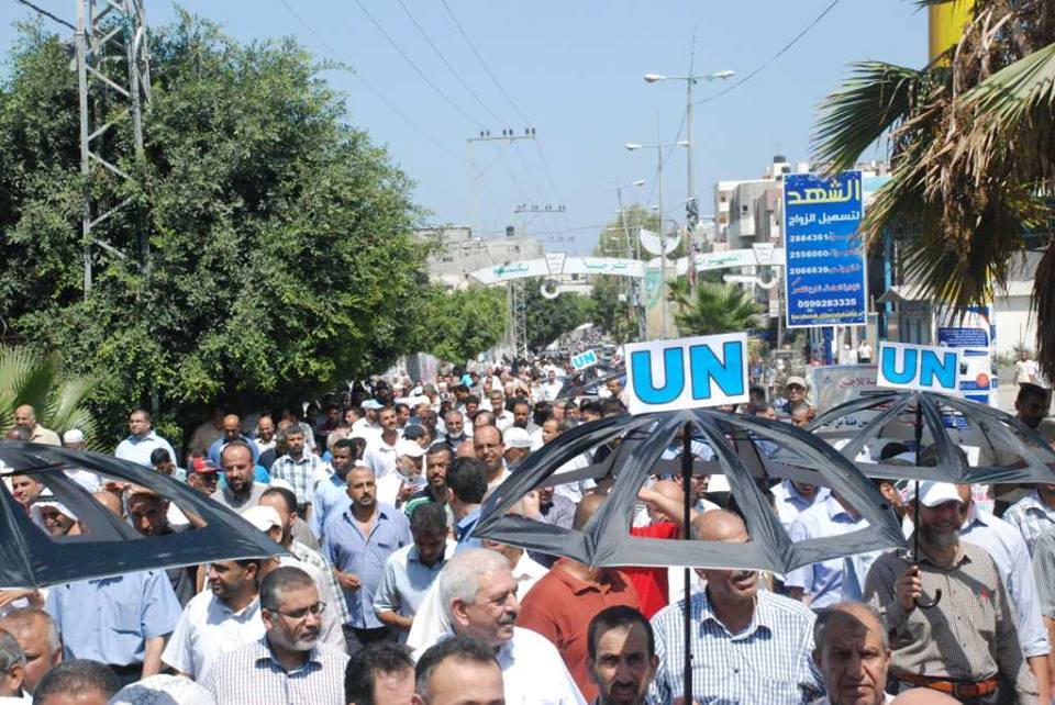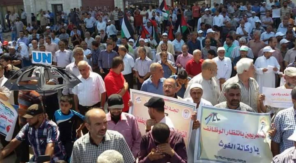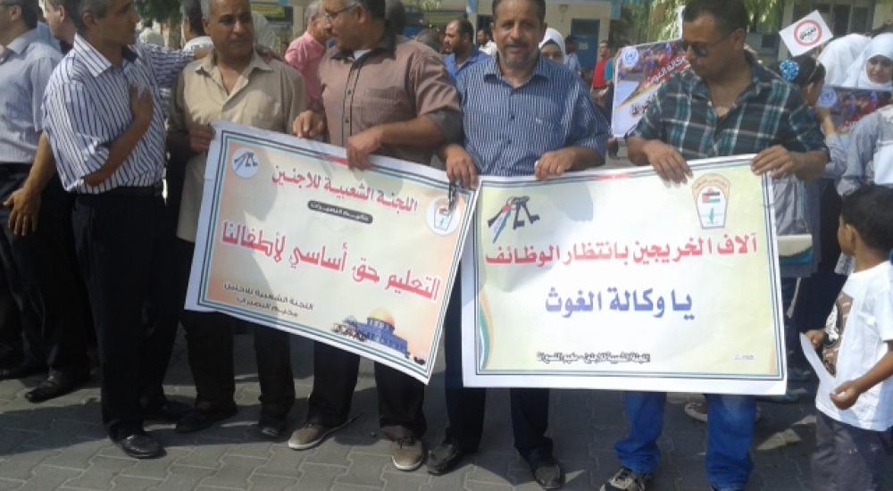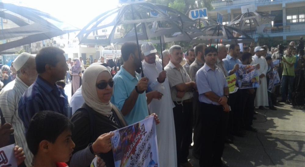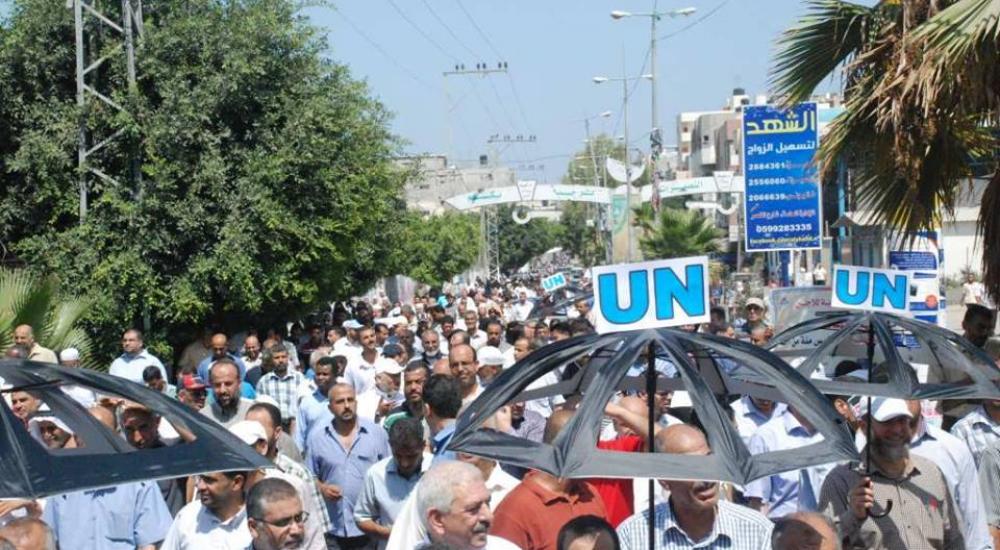 طلاب "أونروا" وموظفوها يحتجون وسط قطاع غزة
