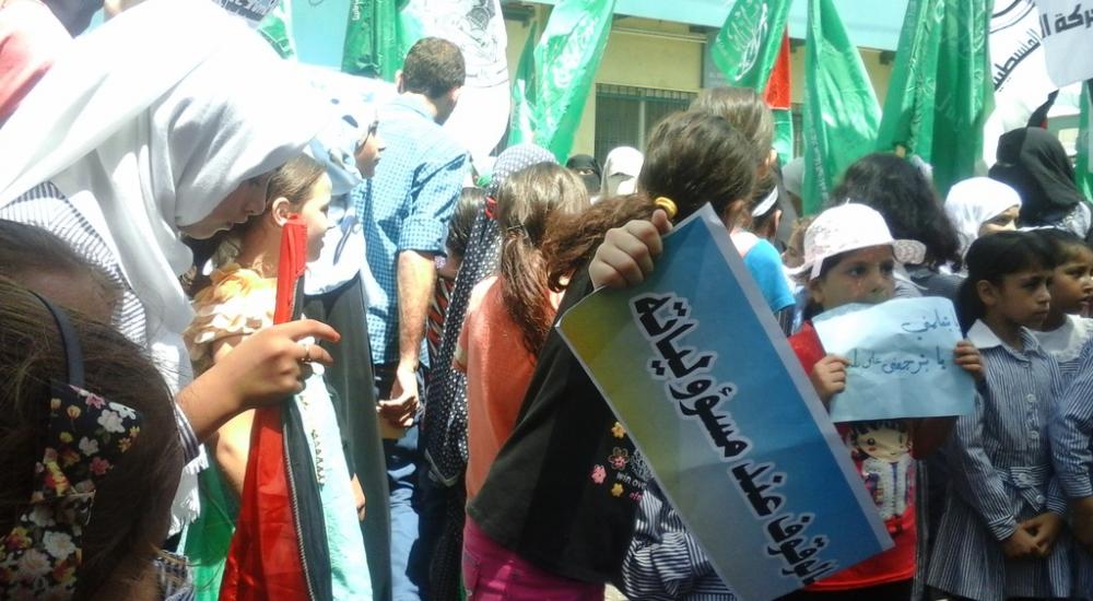 ورفع المشاركات خلال المظاهرة عبارات منددة بالممارسات المتكررة بحق الشعب الفلسطيني، مطالبين "أونروا" بضرورة الرجوع عن قراراتها والوقوف إلى جانب الشعب الفلسطيني.