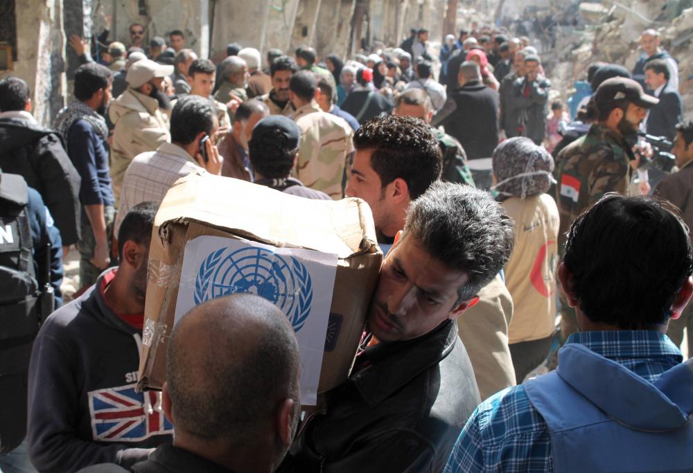 توزيع مساعدات بمخيم اليرموك (أرشيف)